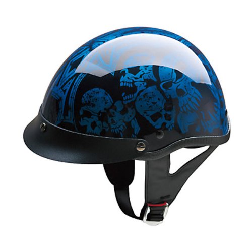 Half Helmets - Motorcycle Half Helmet DOT 100 Screaming Skulls Blue. This is a 100 Series DOT motorcycle half helmet which is one of the lightest and smallest in the market. Approximate weight is 2 lb and this helmet measures 8.75 inches from ear to ear and 11.5 inches from front to back. The new EPS liner is only 1 inch thick. Made using 3 different shell sizes. Item: 100ScreamingSkullsBlue Color: Screaming Skulls Blue DOT Certified: Yes This helmet meets or exceeds DOT FMVSS 218 specifications by DOT. Half Helmet Features: Super Light Weight Fabric Helmet Bag and Owners Manual included Quality Plush Interior Removable visor Face Shield Compatible(Compatible with 100Shield) You can easily wear glasses with or without the face shield Stainless Steel Dual D-rings DOT clear coated in the back Great quality materials and workmanship Helmet Sizing Guide: Please use a cloth tape to take your measurement. It is better to have a helper do the measuring in order to get accurate measurement. The circumference of the head should be measured at a point approximately one inch above the eyebrows, or at whatever point gives the largest possible measurement. If you find that your measurement falls between two sizes, choose the smaller size for this helmet. XS - 20 1/4 - 20 7/8" ( or 52-53 cm) S - 21 - 21 5/8" ( or 54-55 cm) M - 21 3/4 - 22 3/8" ( or 56-57 cm) L - 22 1/2 - 23 1/8" ( or 58-59cms) XL - 23 1/4 - 24" ( or 60-61 cm) XXL - 24 1/8 - 24 7/8" ( 62-63 cm)